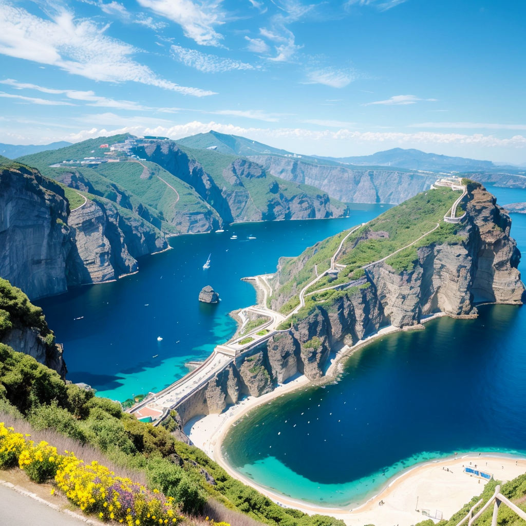 상쾌한 산토리니 섬의 야외 정원을 보십시오. 차분하고 아름답게 보입니다. 할 수 없습니다. 외출해야합니다. ^^